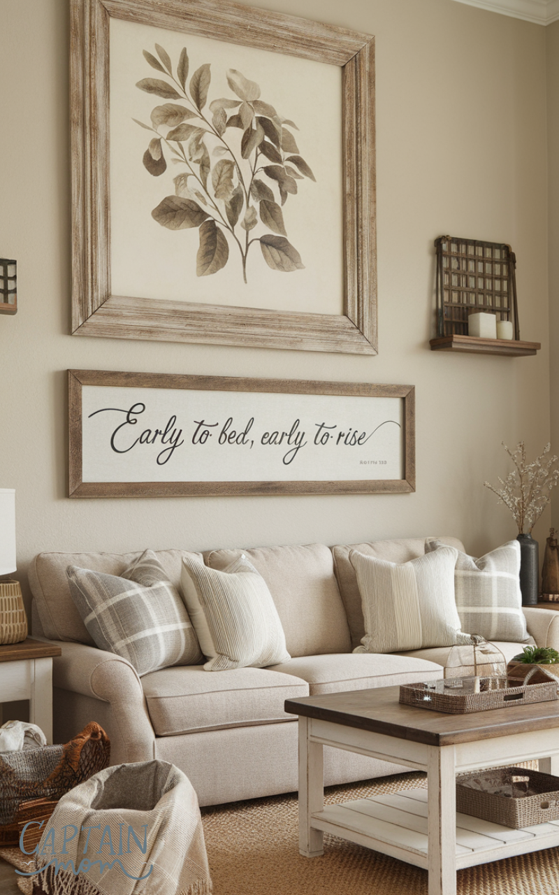 Wall art with farm-inspired quotes, botanical prints, or rustic frames brings personality to modern farmhouse home decor. Choose simple, tasteful designs that complement your furniture and color palette, creating a homey and curated feel.