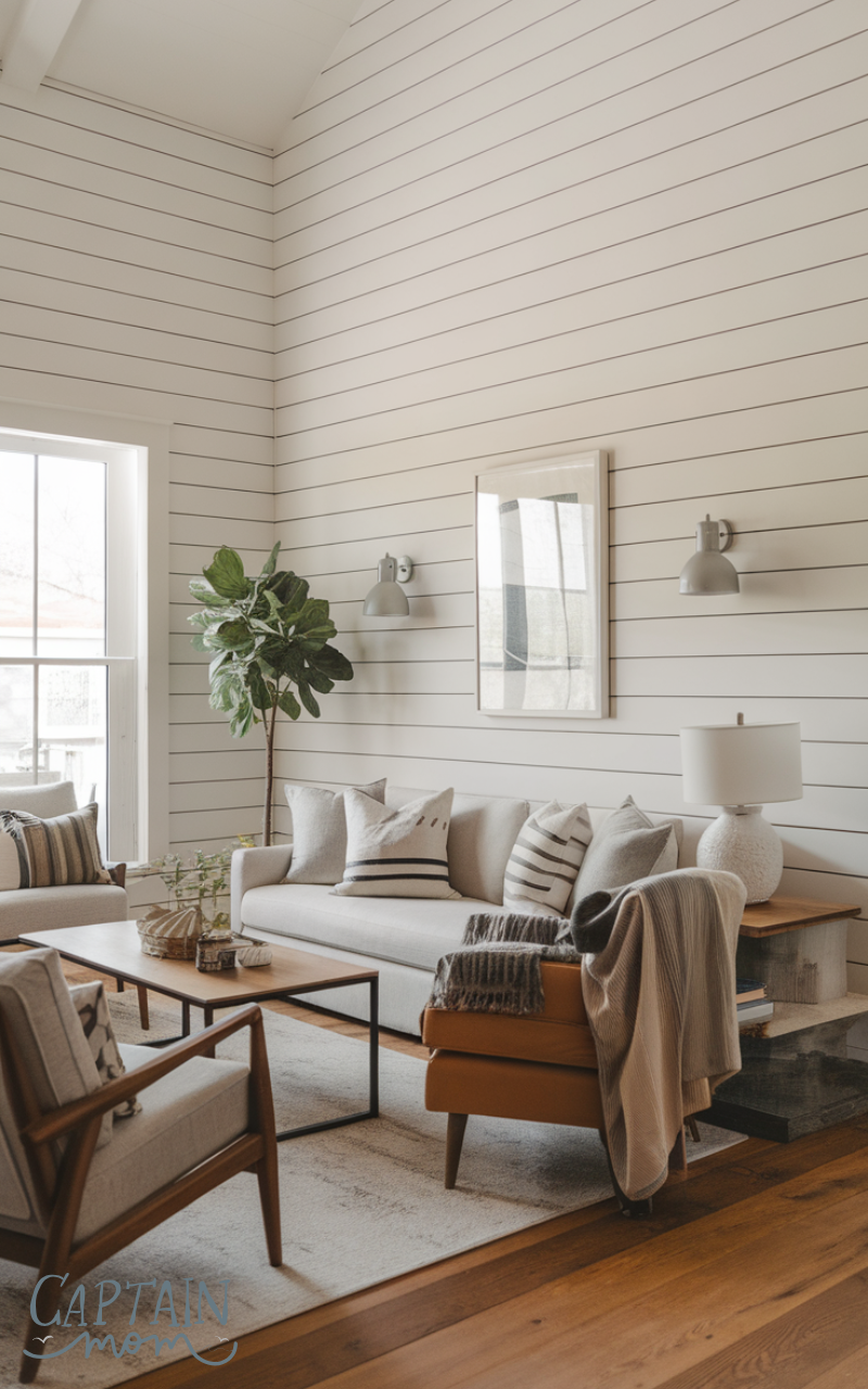 Shiplap walls are a classic feature of modern farmhouse home decor. Horizontal wooden boards painted in white or soft tones add texture and interest without overwhelming the space. Shiplap works in living rooms, bedrooms, or kitchens to instantly bring rustic elegance.
