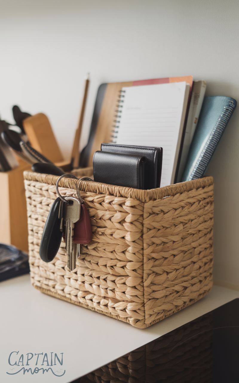 Designate a basket or area for keys, wallets, phones, and school items. Having a dedicated spot for essentials prevents last-minute searches. This small organization step makes the morning routine for moms more efficient and less chaotic.