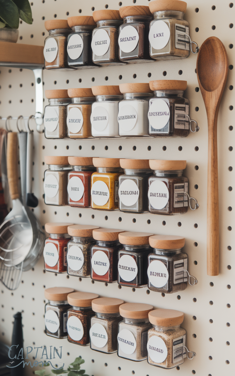 I recently discovered magnetic spice jars, and they’ve completely changed my approach to spice rack organization. I stick them on my fridge or a metal board on the wall, which saves cabinet space and keeps spices within arm’s reach while cooking. I like labeling each jar clearly, so I don’t waste time guessing what’s inside. This method also adds a fun decorative touch to the kitchen, letting me display colorful spices in an organized, compact way. It’s perfect for small kitchens or anyone who wants a modern, visually appealing spice setup.