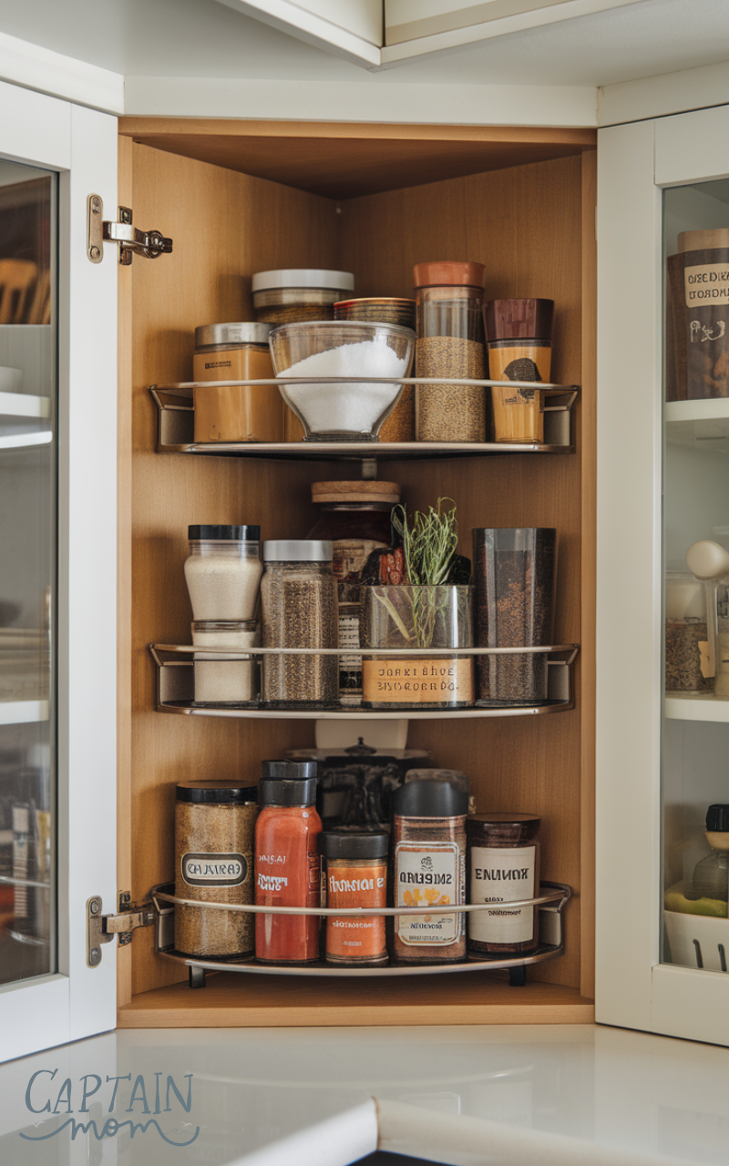 Lazy Susans are lifesavers for spice rack organization in corner cabinets where things tend to get lost. I simply spin the tray to reach any spice, which saves time and avoids digging through stacks of jars. I love grouping similar spices together so that every type is easy to grab while cooking. Lazy Susans also help me keep track of what I have, reducing expired spices and wasted money. They are perfect for maximizing awkward cabinet spaces while keeping everything neat and accessible.