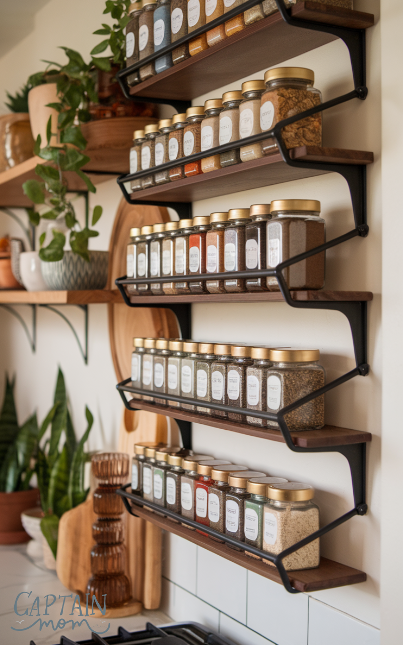 Using tiered spice racks is one of my favorite ways to enhance spice rack organization. They allow all your spice jars to be seen at a glance, making it easy to find exactly what you need without moving other jars around. I love how they fit perfectly inside cabinets or on countertops, giving a professional, clean look while saving space. Tiered racks are especially helpful if you have a variety of spice jar sizes, as each tier can accommodate small or tall containers. This simple adjustment makes cooking faster, smoother, and much more enjoyable.