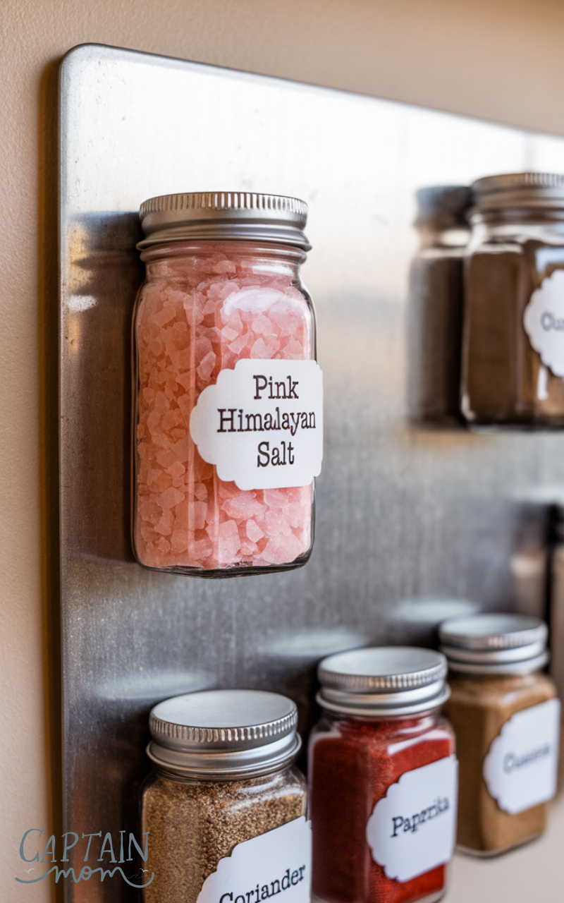 14. Magnetic Spice Jars on Fridge or Metal Board