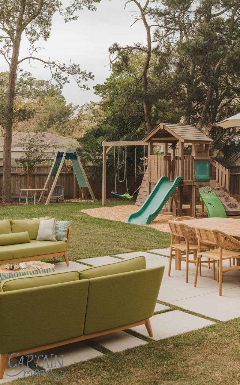 The ultimate idea combines everything into one flexible space. These family spaces using family backyard ideas with kids include seating, play areas, and relaxation zones. Furniture that adapts makes it practical and welcoming. Kids play, parents relax, and everyone feels included. This setup grows with your family and supports daily life. It’s the perfect balance of comfort, fun, and togetherness.