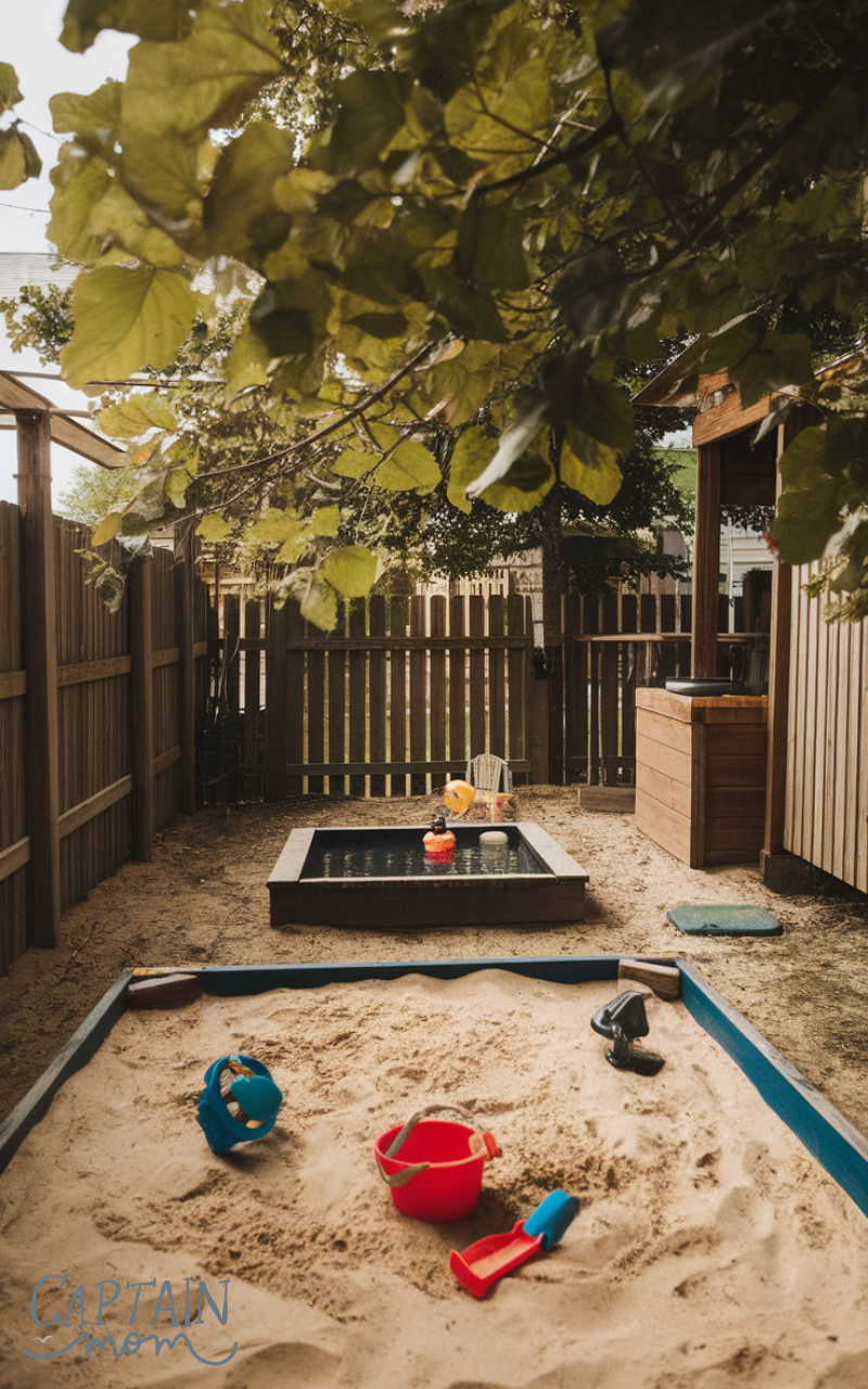 Sand and water play never goes out of style. These family spaces using family backyard ideas with kids are perfect for sensory fun. A sandbox paired with a small water table keeps kids active and engaged. It supports creativity, motor skills, and imaginative play. Parents love it because it’s contained and easy to supervise. With proper covers and simple rules, it stays clean and safe. This setup feels like a mini beach right at home.