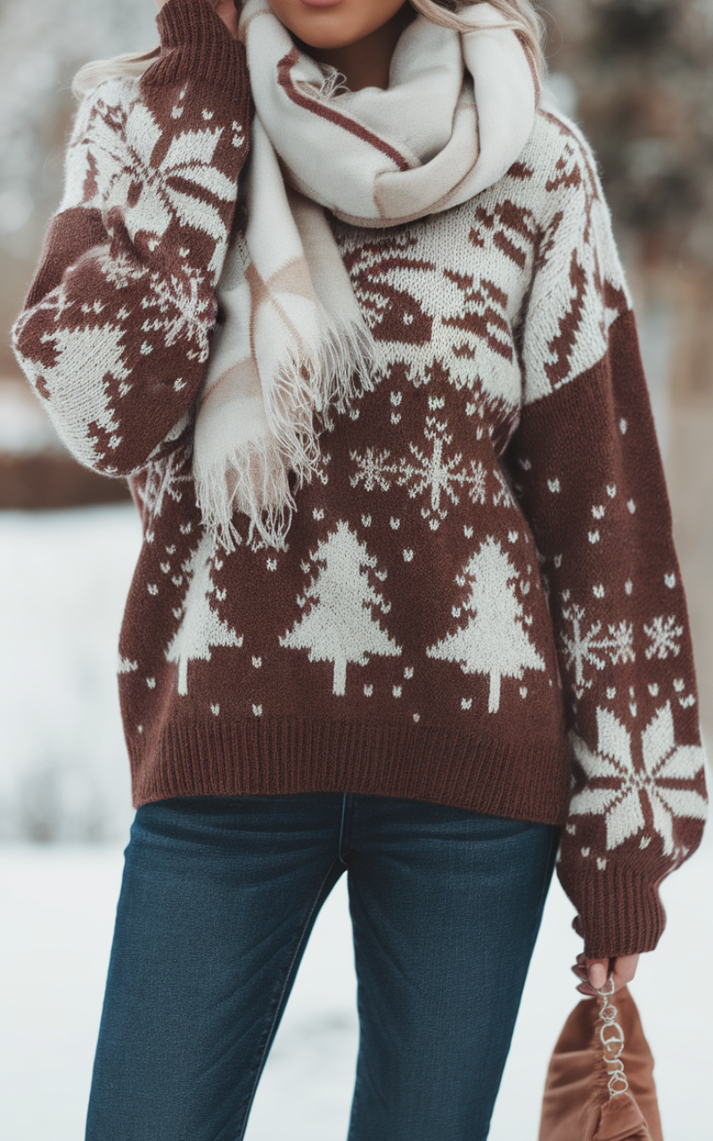 An oversized knit paired with skinny jeans is a top Pinterest favorite using aesthetic winter outfits for women. It’s effortlessly chic, comfy, and perfect for casual outings. You can accessorize with ankle boots and a cute scarf, making it easy to look stylish while staying warm. This outfit is simple, cozy, and versatile.