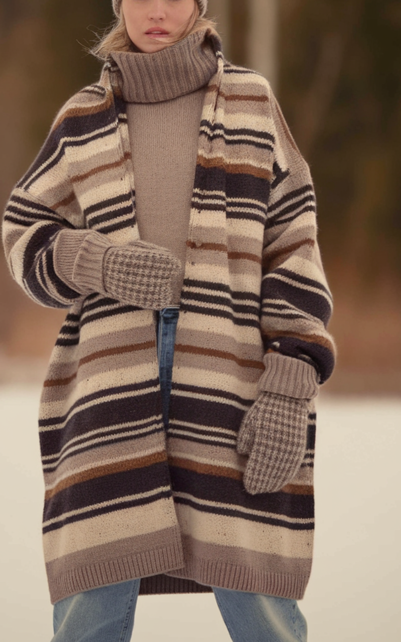 Oversized coats with matching gloves, scarves, and hats are classic Pinterest favorites using aesthetic winter outfits for women. This coordination elevates the outfit instantly. Layer with a simple sweater and jeans for an effortlessly chic and polished winter style.